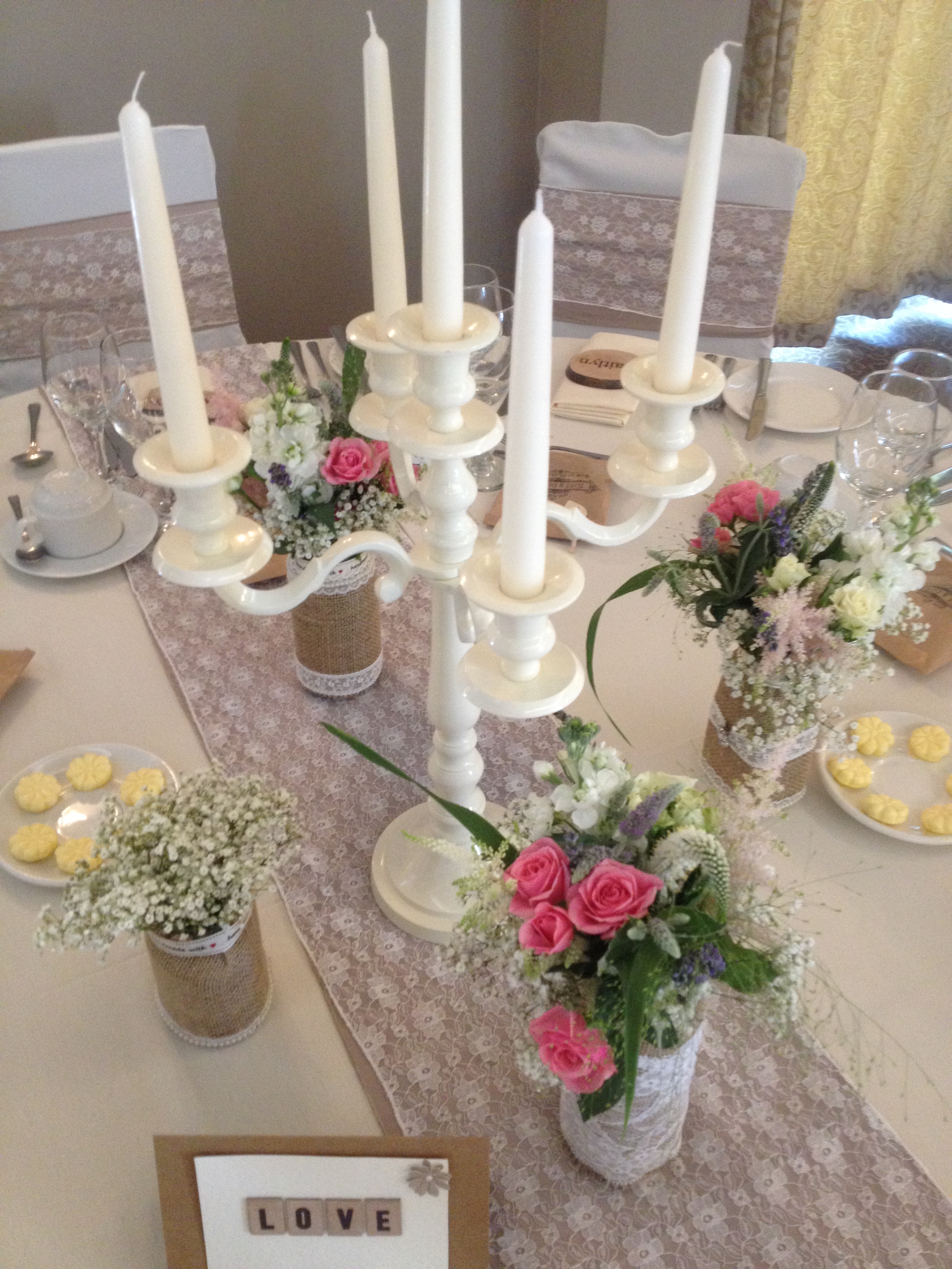 3. Keep your flowers simple. Loose bundles, centrepieces made from pastel colours or light flowers (such as these baby’s breath-inspired vases from Smiths) add a wonderfully vintage feeling to any space….especially when paired with lace or hessian ribbon or table runners!